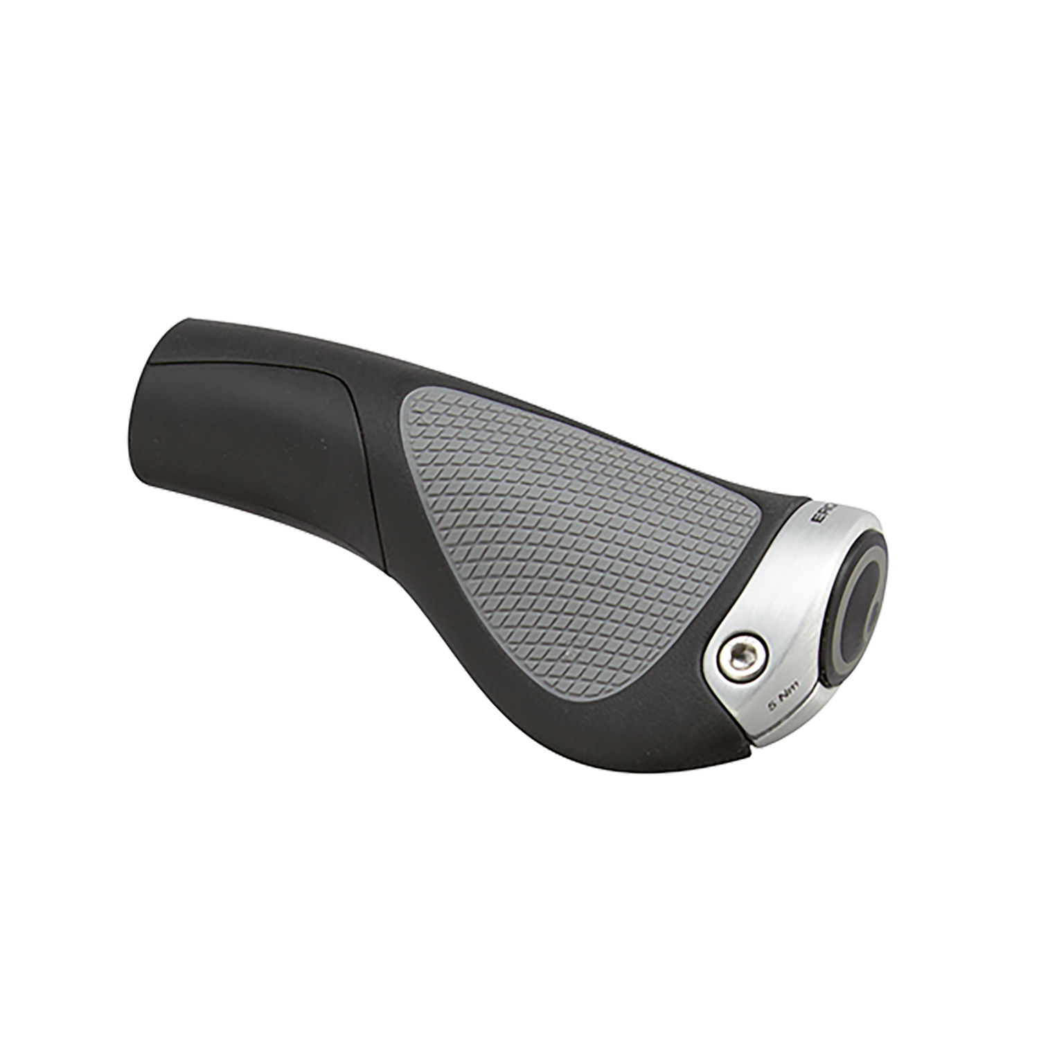 The original ergonomic grip. The GP1 sets the Worldwide standard in ergonomic comfort, materials, and quality. The GP1 eliminates numb hands, aching fingers, and tired forearms. The uniquely shaped grip body is made from 100% German, TUV-certified rubber compounds of the purest quality with infused Medical-grade white mineral oil for improved flexibility and durability. A forged aluminum clamp allows the grip to be adjusted for perfect fit, can be easily readjusted, and eliminates twisting once installed. (Carbon bar compatible). Name GP1 Use Mountain Bike, Touring, Commuting Size S - L Variant Regular Clamp 100% Recyclable Aluminum