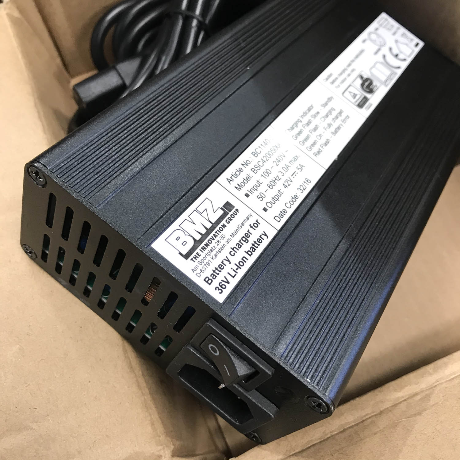eZee battery charger 36V 5A Hi Power - Faster than the standard 3A charger - Suitable for charging standard eZee under the saddle batteries, as found in Sprint, Quando, Forza, Torq etc. Also charges eZee flatpack batteries found on Viento folding and Rapid cargo bikes.