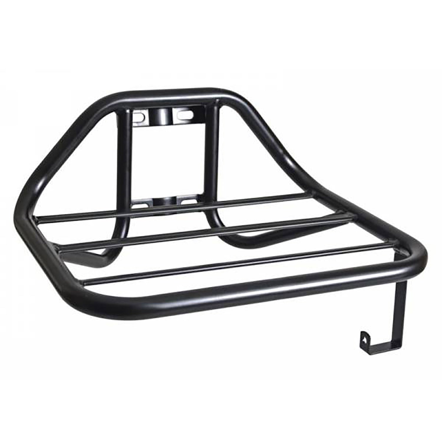 Front Transport Carrier 16mm steel tube, head tube attachment up to till 50mm, with light bracket, load capacity: 15kg, black, meets the requirements of EN 14872 surface dimension: 35 x 28cm