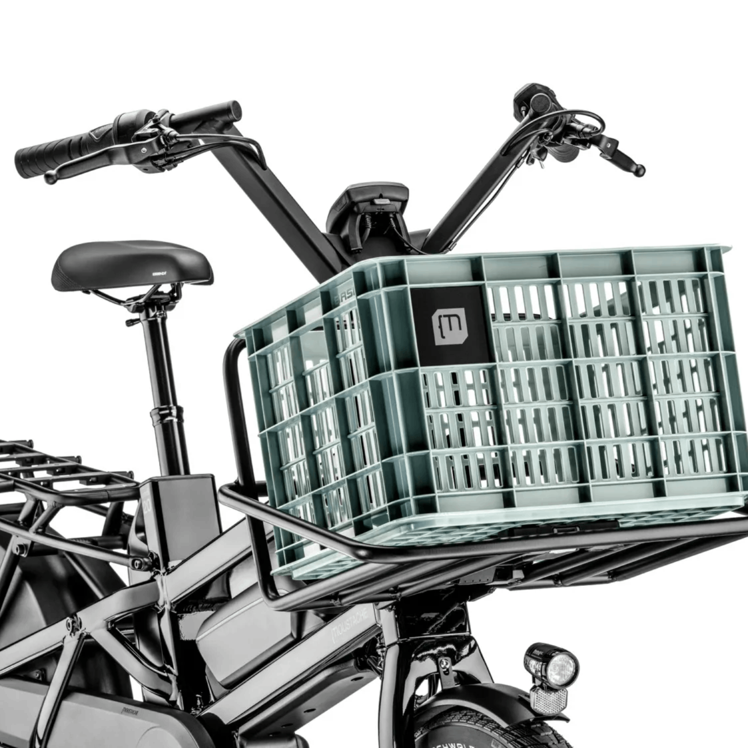 Our transport box is the ideal partner for your daily journeys. Unusual and practical thanks to its MIK fast mounting system, it easily fixes to the rear or front* of your bike. It dismounts in one click, and you can easily store this stackable storage box, which what’s more, is not afraid of rain and is easily cleaned.