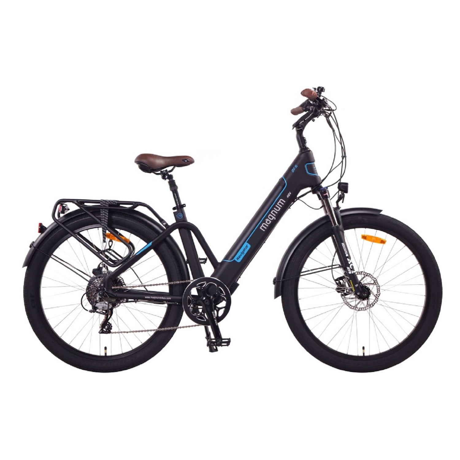 Magnum's latest step-through electric bike - the Navigator - is no exception. The powerful 48V motor continues the tradition of superior hill-climbing capabilities, while the upright riding position, gel saddle and suspension fork ensure a comfortable ride.