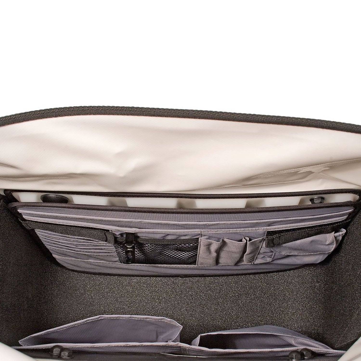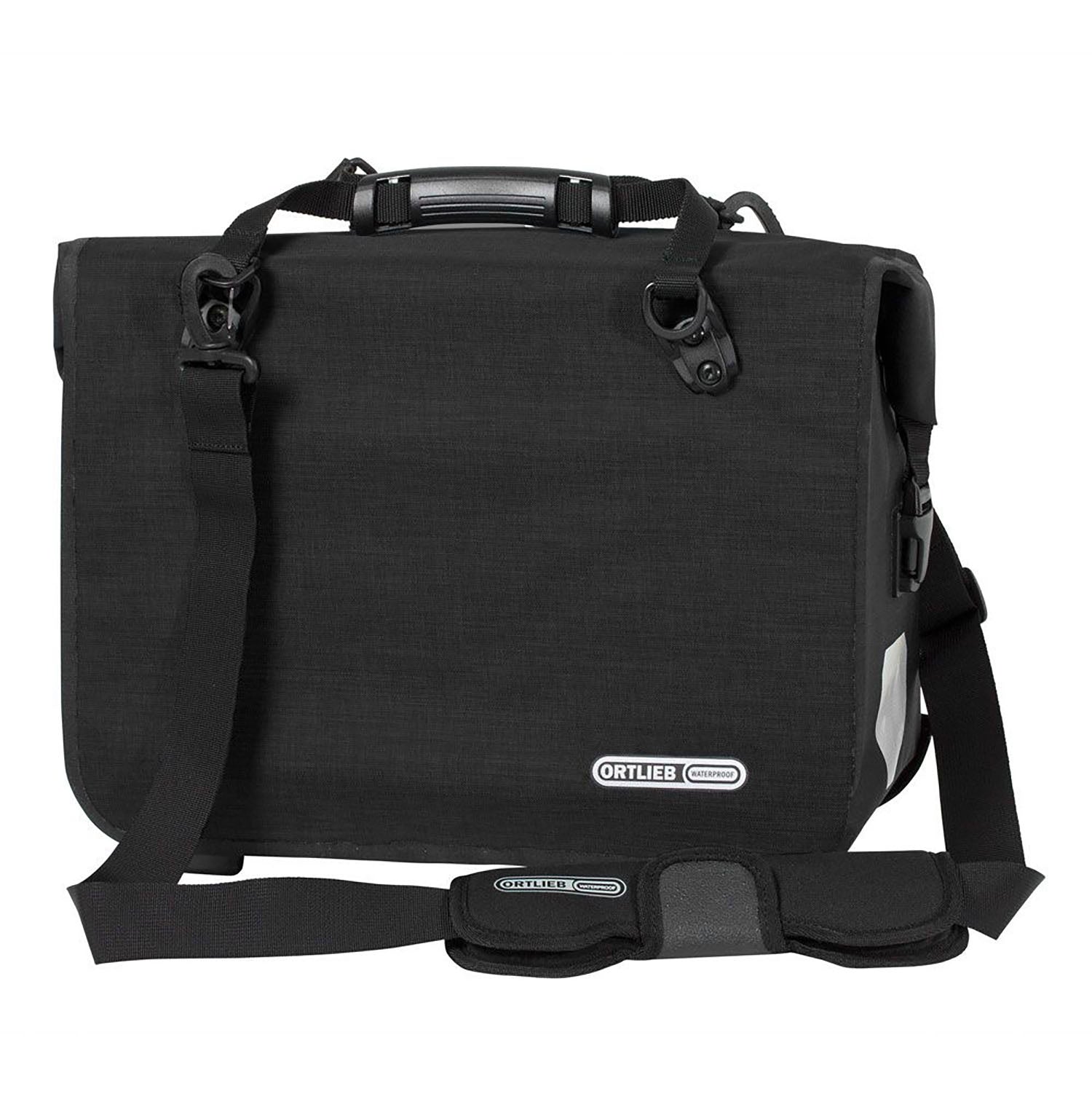 The waterproof bike briefcase with roll closure can be mounted on the right or left side of the rack. It can be quickly mounted and easily taken off the rack single-handed. Two large 3M Scotchlite reflectors and a reflective ORTLIEB logo (except silver version of PD620 fabric) ensure safety in the dark and in bad weather conditions. Edge protectors and base feet on the rear and bottom ensure optimal protection of the bag. It features a padded shoulder strap for comfortable transport. The bag is available in two versions: with QL2.1 or QL3.1 mounting system.