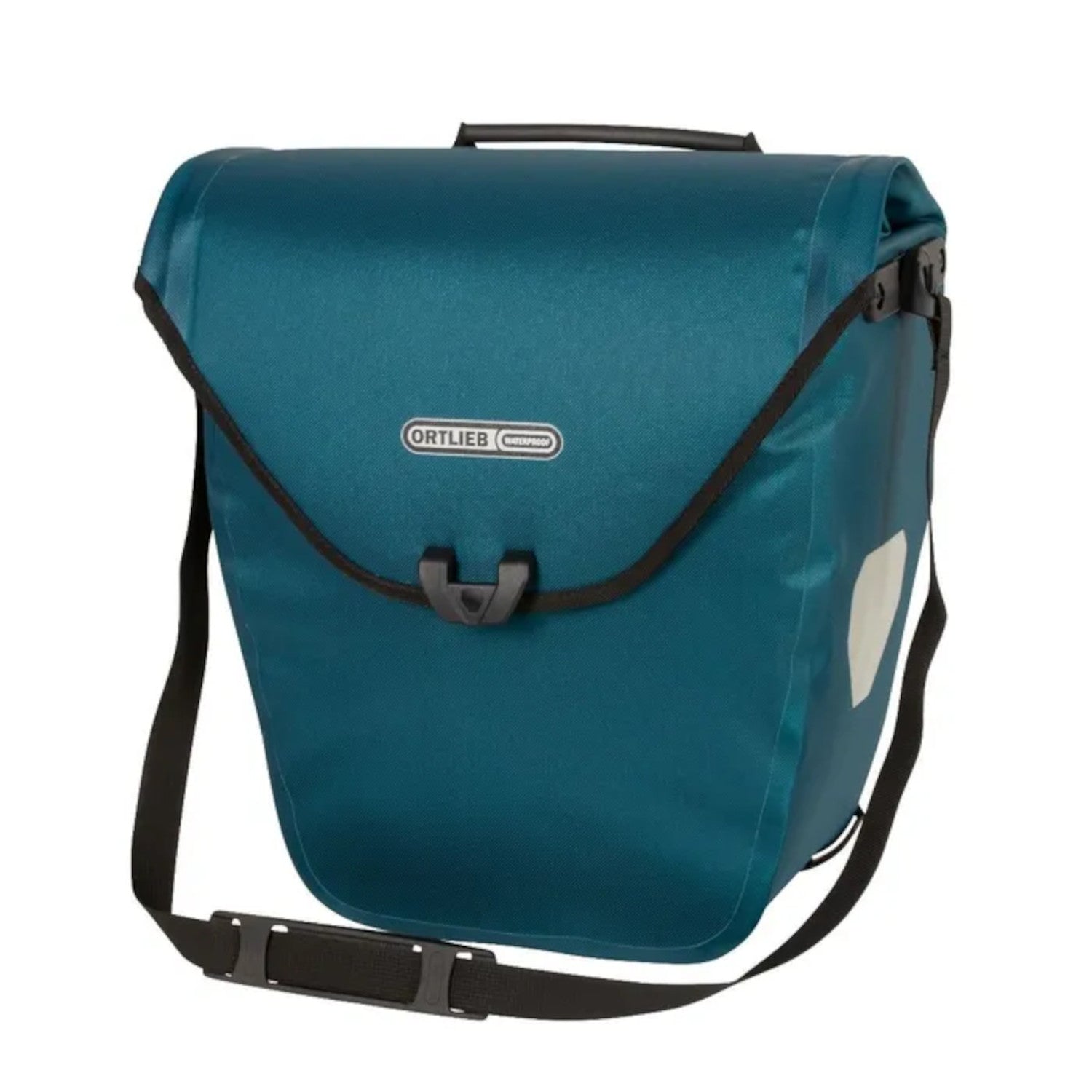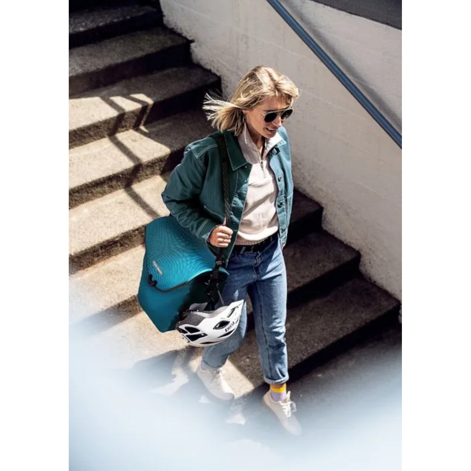 And you can conveniently open and close the magnetic snap buckle with one hand. Made of waterproof, abrasion-resistant nylon fabric, the Shopper can be attached to your bike rack with the proven Quick-Lock2.1 system. And then simply sling the Velo-Shopper over your shoulder with the detachable strap when you reach your destination. Go ahead and fill the Shopper to the brim because its stiffened inside construction will