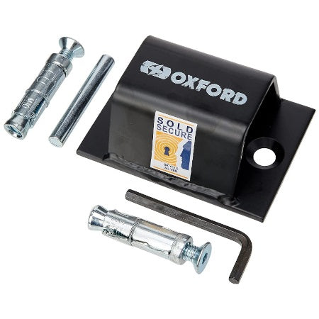 The Oxford Anchor 10 Ground Anchor is a hardened steel bolt-down anchor for floors and walls. Use in combination with a chain lock for a solid dependable and secure theft deterrence for your bike or possession. The bolts are protected by ball bearings and is inaccessible when a lock is being used for theft protection. The Ground Anchor is a dependable and robust security option.