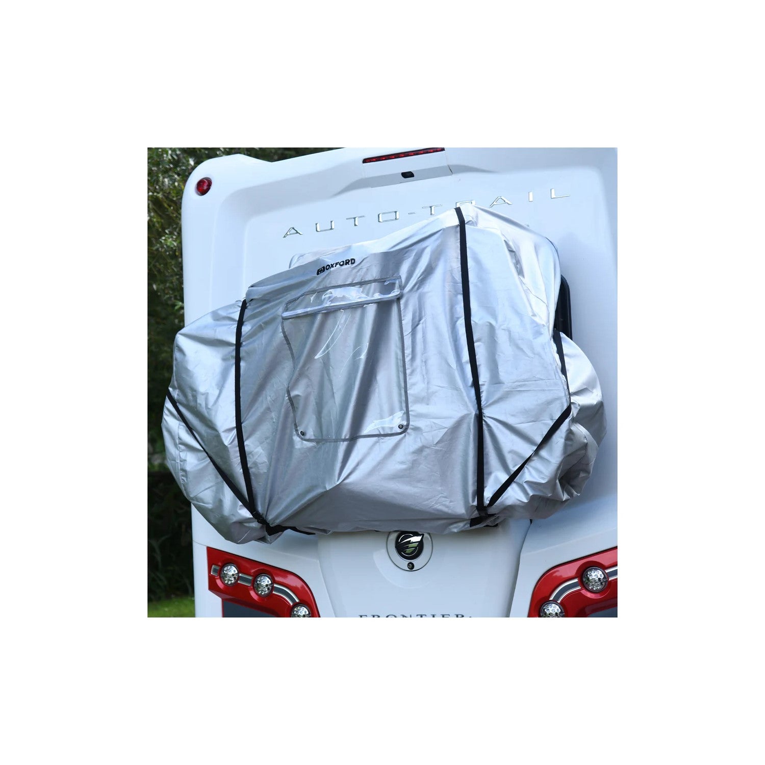 This deluxe bicycle cover is a fully enclosed bike cover, to keep your bikes clean and dry when transporting them around on the back of your motorhome. It's made from heavy duty 300D polyester for extra strength and durability. The cover is weatherproof and fits 1 or 2 bikes on your travels. It can also be packed away neatly into a storage bag when not in use.