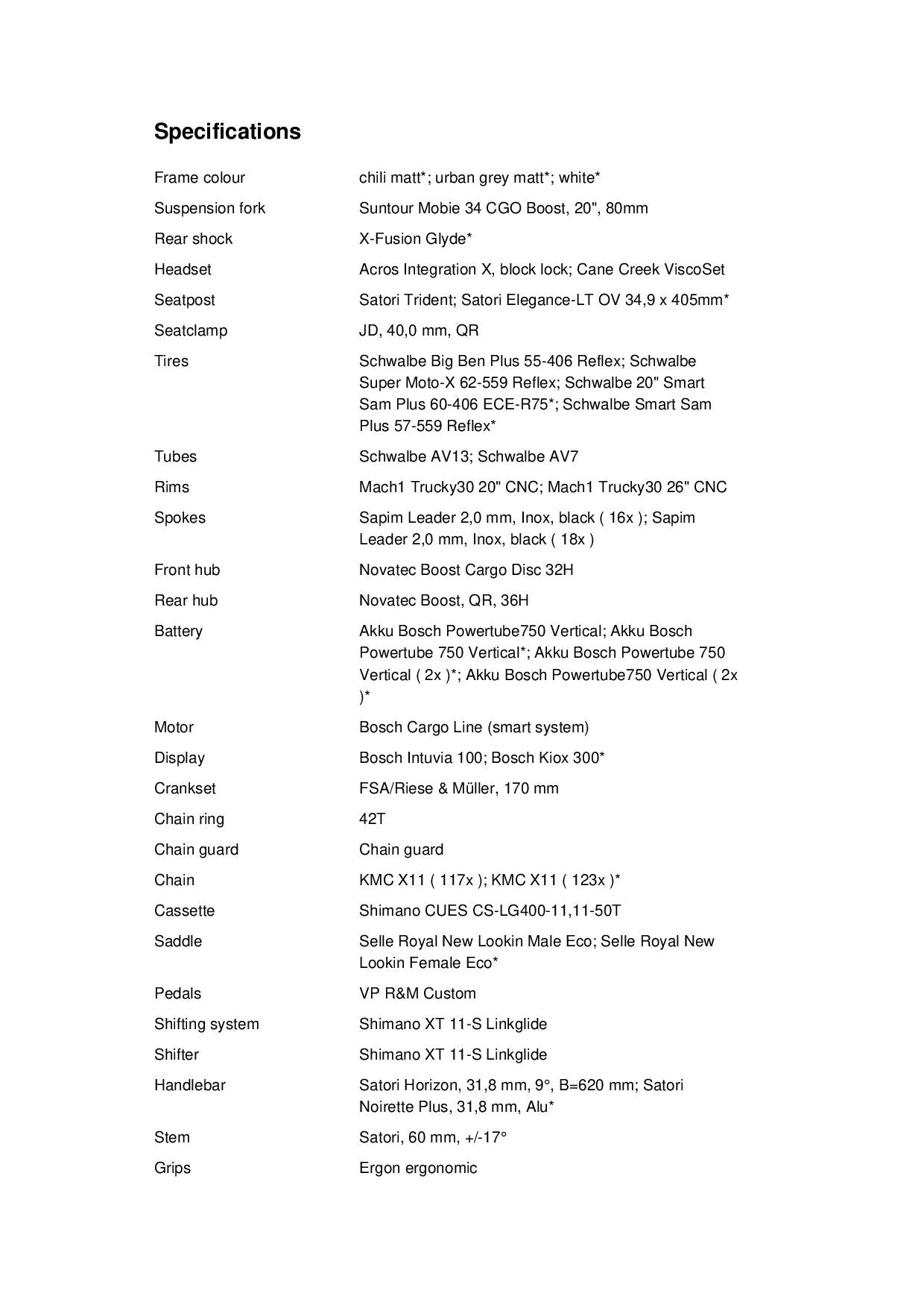 - Anti-lock braking system ABS: Bosch eBike ABS 2.0