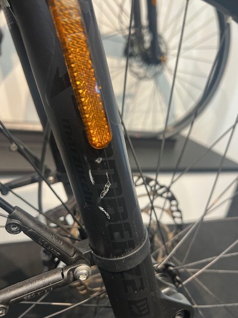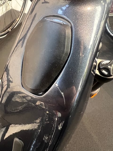 This Riese and Muller Homage has been traded in and is in very good condition, with only 756km on the Odometer and just 9 charge cycles on the battery. There are some imperfections on the paint work such as a small paint chip near the charging port and some scratches on the brand sticker of the front fork, please see details in photos.