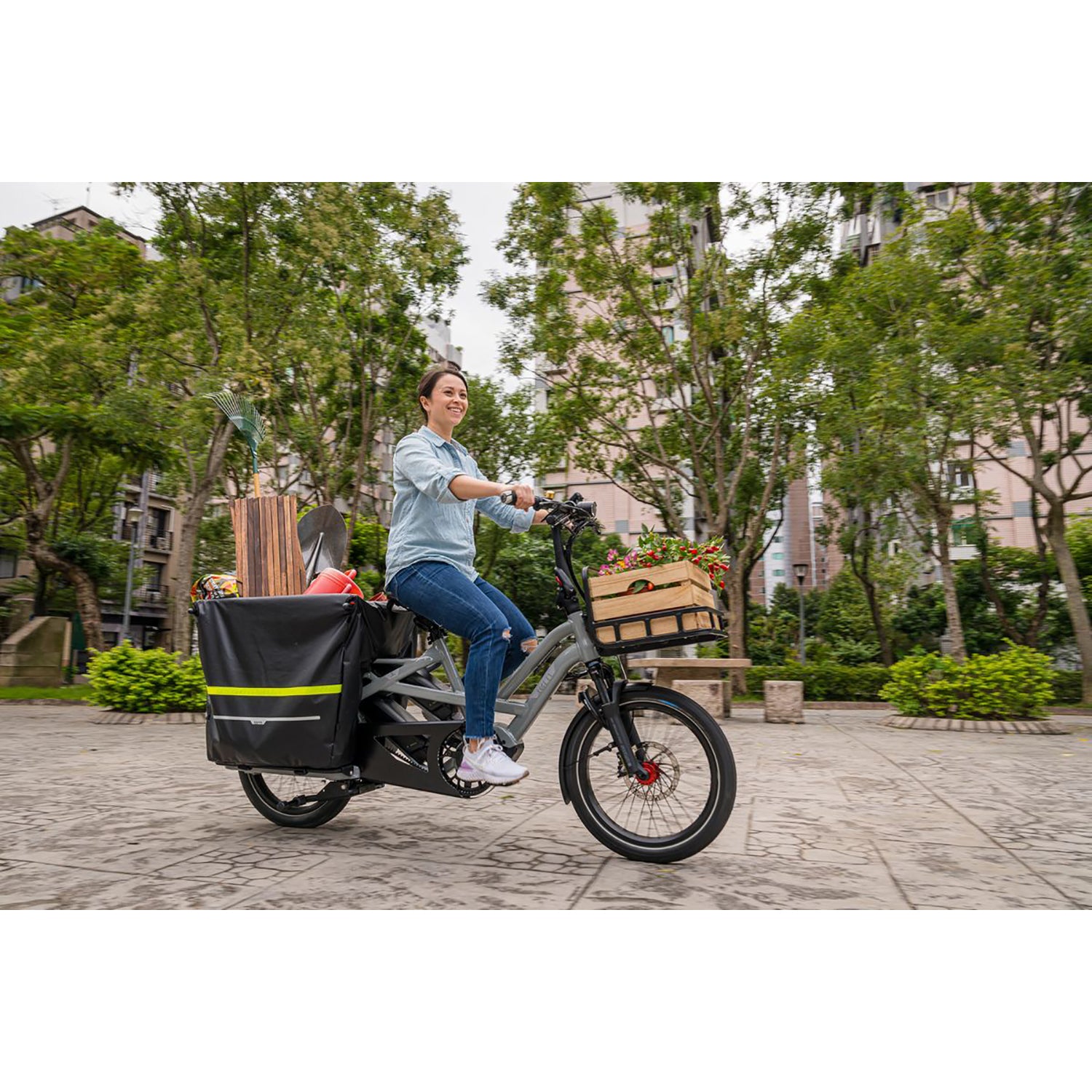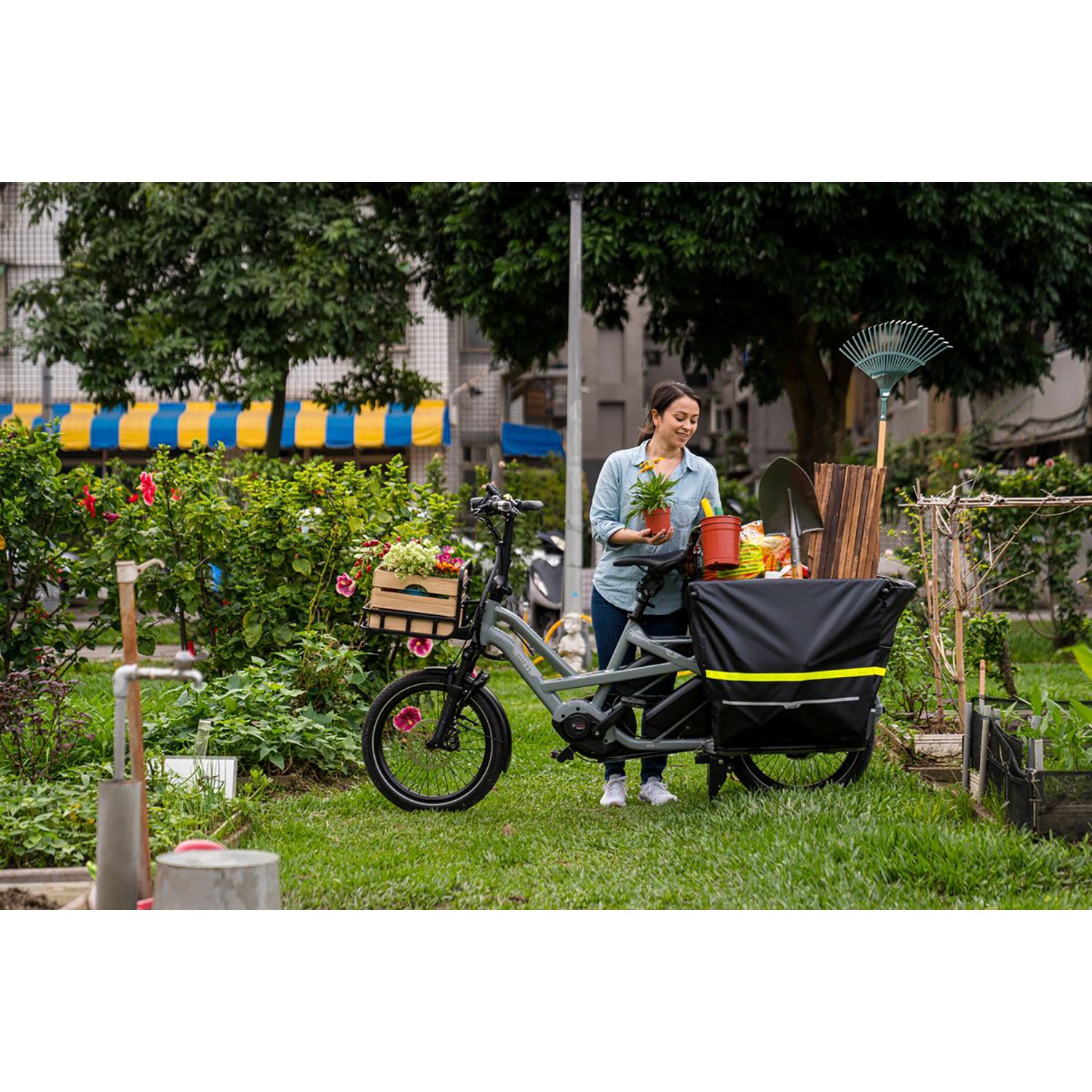 When combined with the Clubhouse+™ and Sidekick™ Wide Decks, the Storm Box transforms the rear of the GSD into a massive, weather-protected bucket. Two weather-resistant lids let you easily switch between carrying kids and hauling cargo. The water-resistant and lockable Cargo Lid protects your stuff from rain and prying eyes, while the Kid Lid cinches tight to keep little ones warm and cozy, even on bad-weather days.