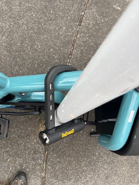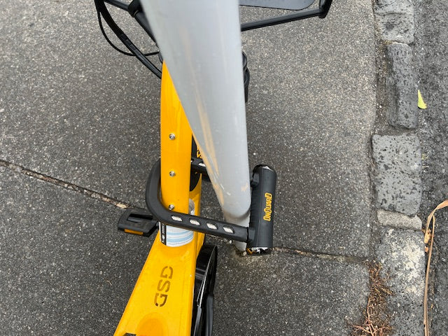 It's not a very large lock, which can be challenging when locking e-bikes to poles and bike racks. However, it can be done - we have tested this on a range of e-bikes that we sell and in each case the bike needs to be hard up against the pole or bike rack (see product photos).
