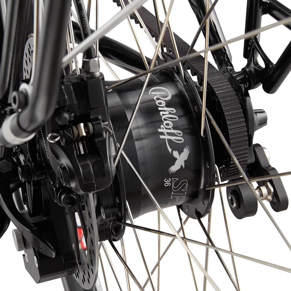 Rohloff 14 speed gear system with Gates carbon belt drive. Rohloff hubs are safe from mud and other foreign bodies while maintaining incredible gear efficiency.