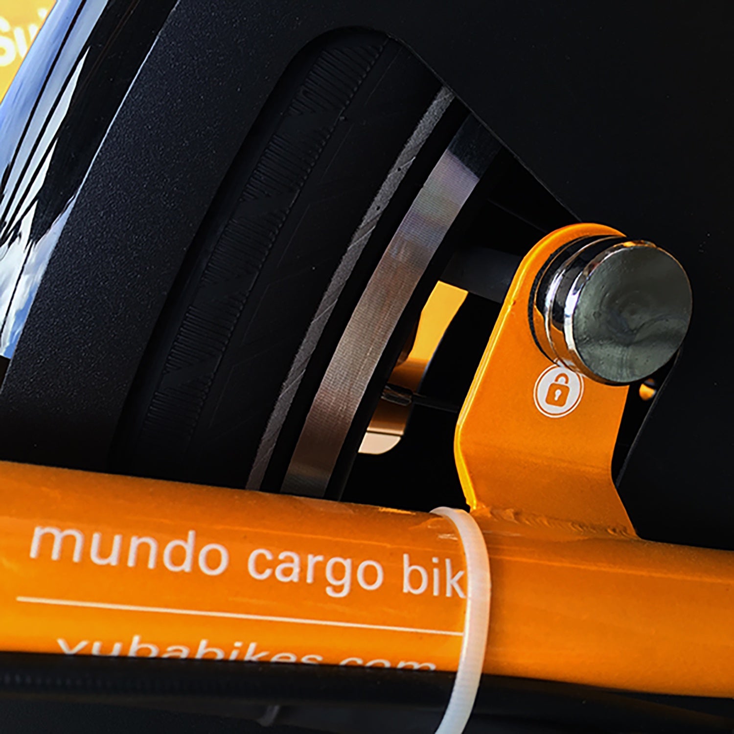 An easy to use wheel lock for any V3 Boda Boda, V5 Mundo or Spicy Curry bike.